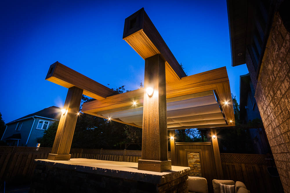 - Modern pergola with retractable ShadeFX awning