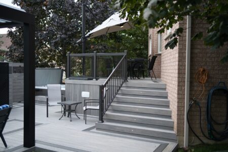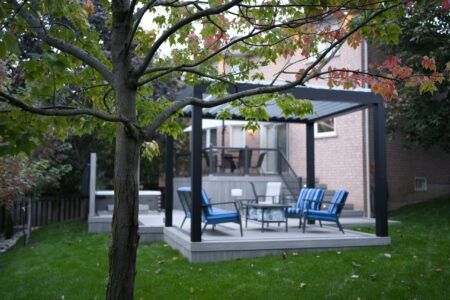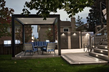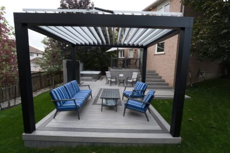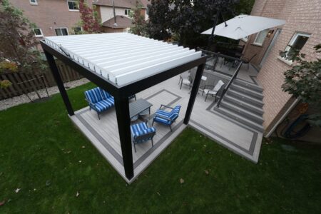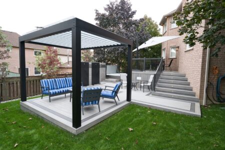 Modern Multi-Level Deck & Louvered Pergola Retreat — Rosefield Ct, Mississauga